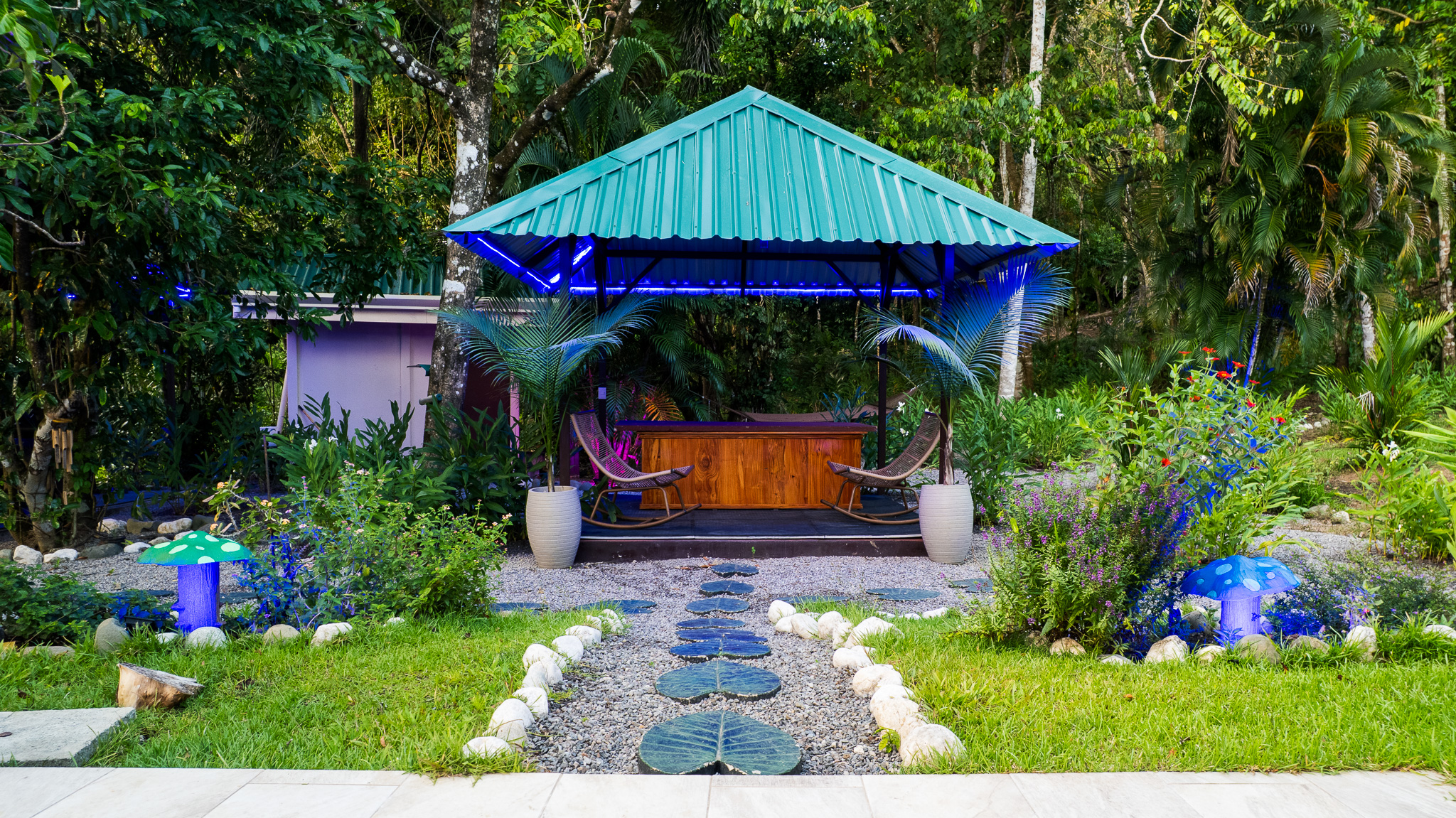 - Lush garden with stepping stones at Pavones Resort
