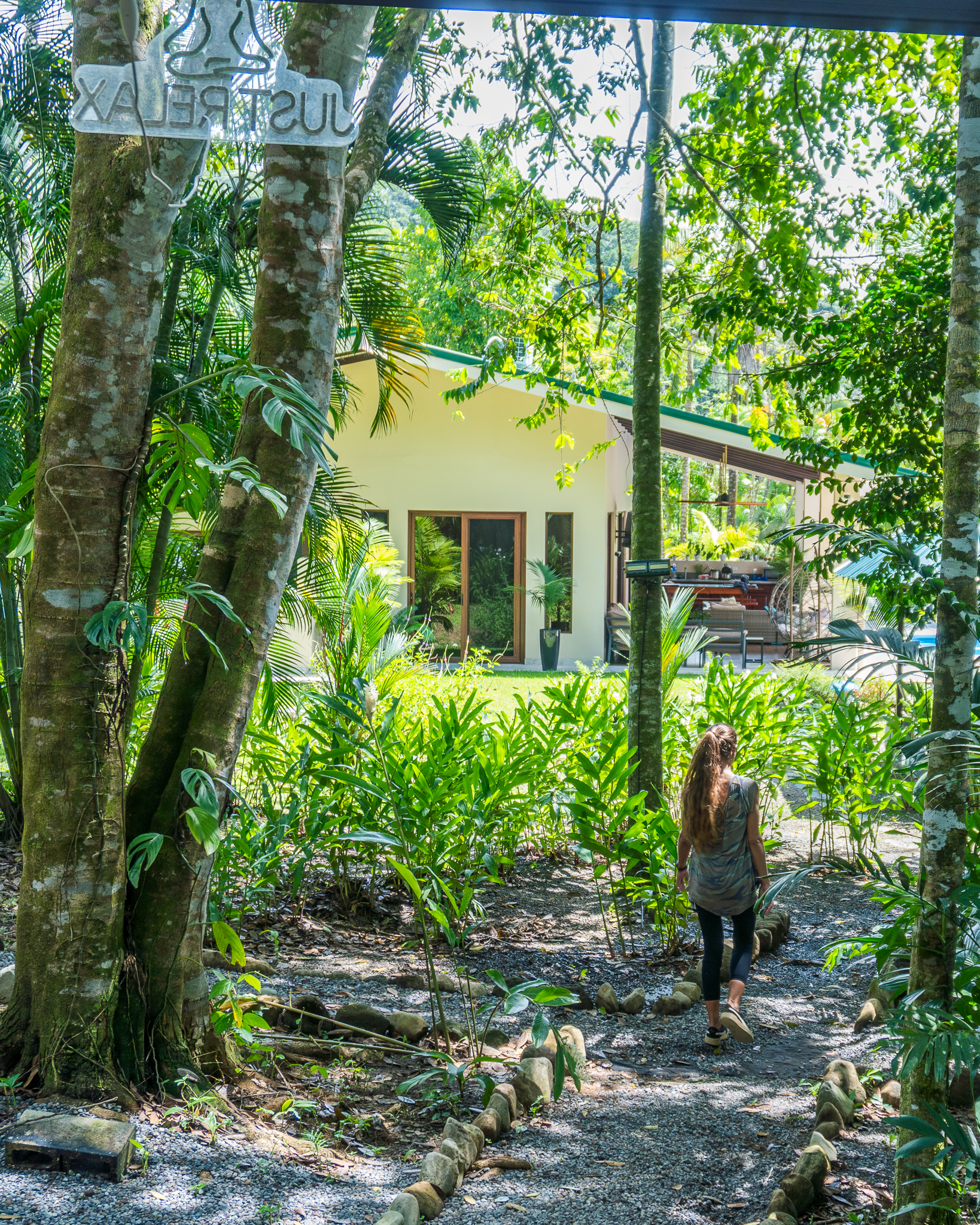 - Woman walking jungle path to villa at Pavones Resort