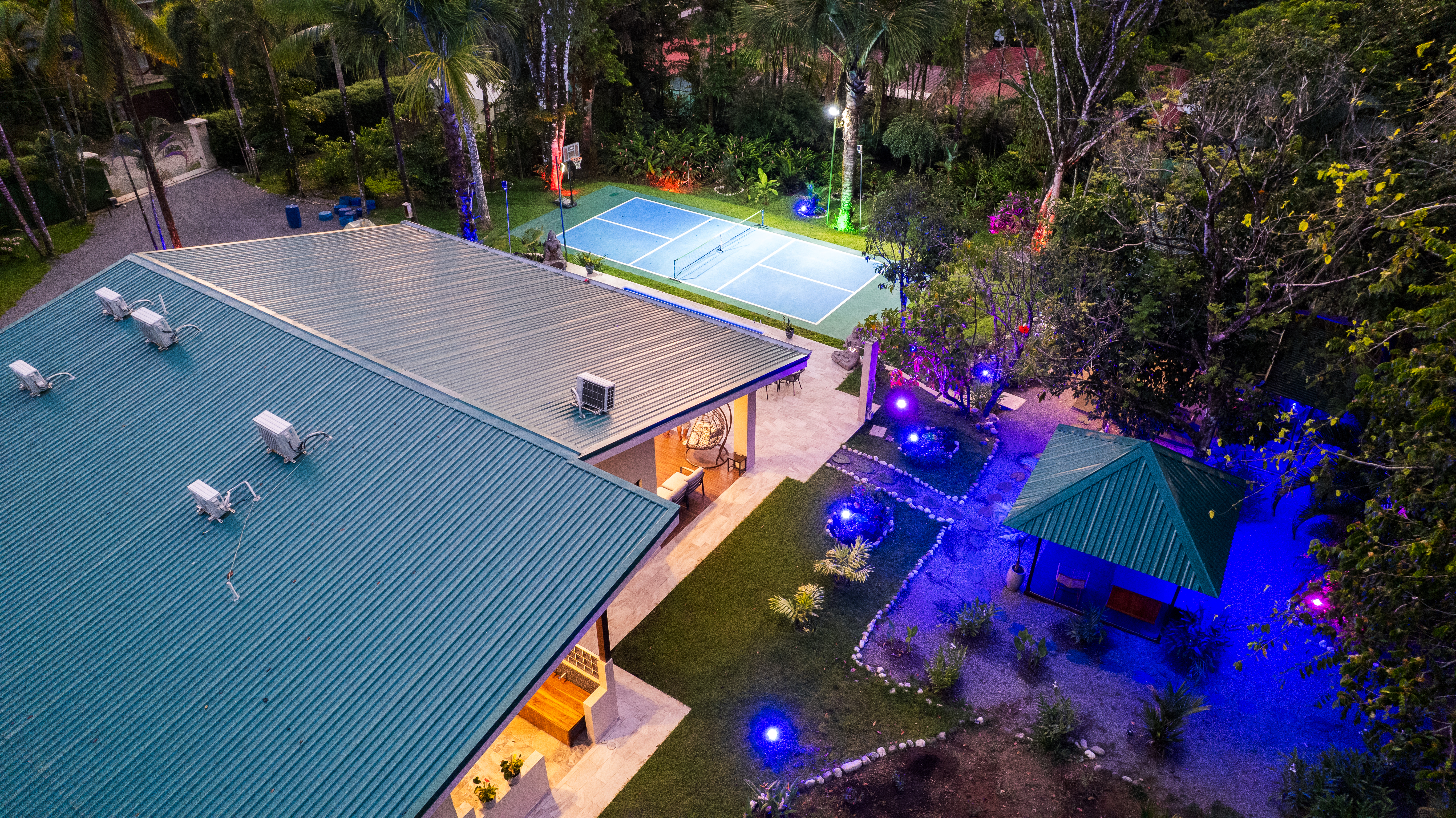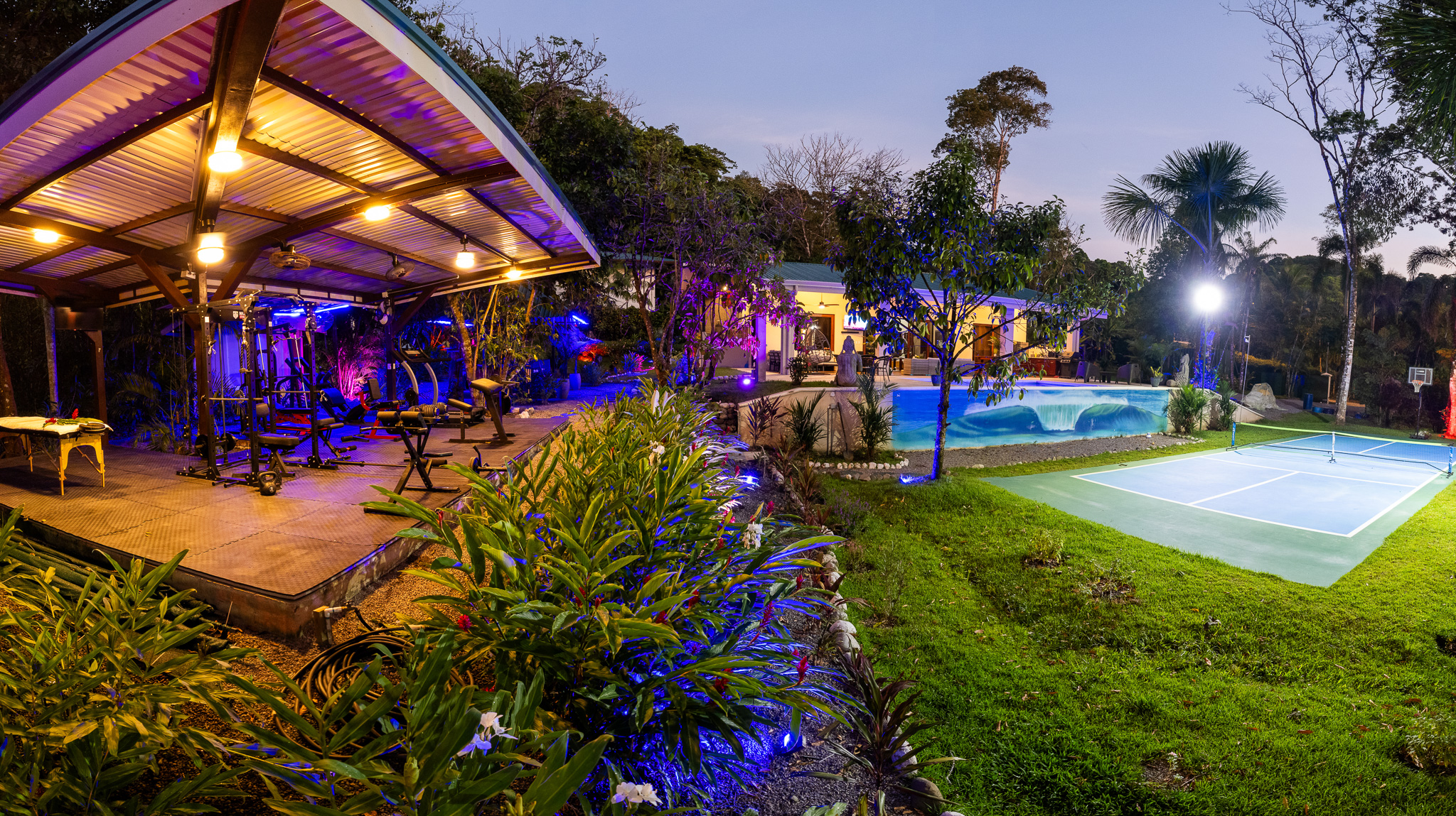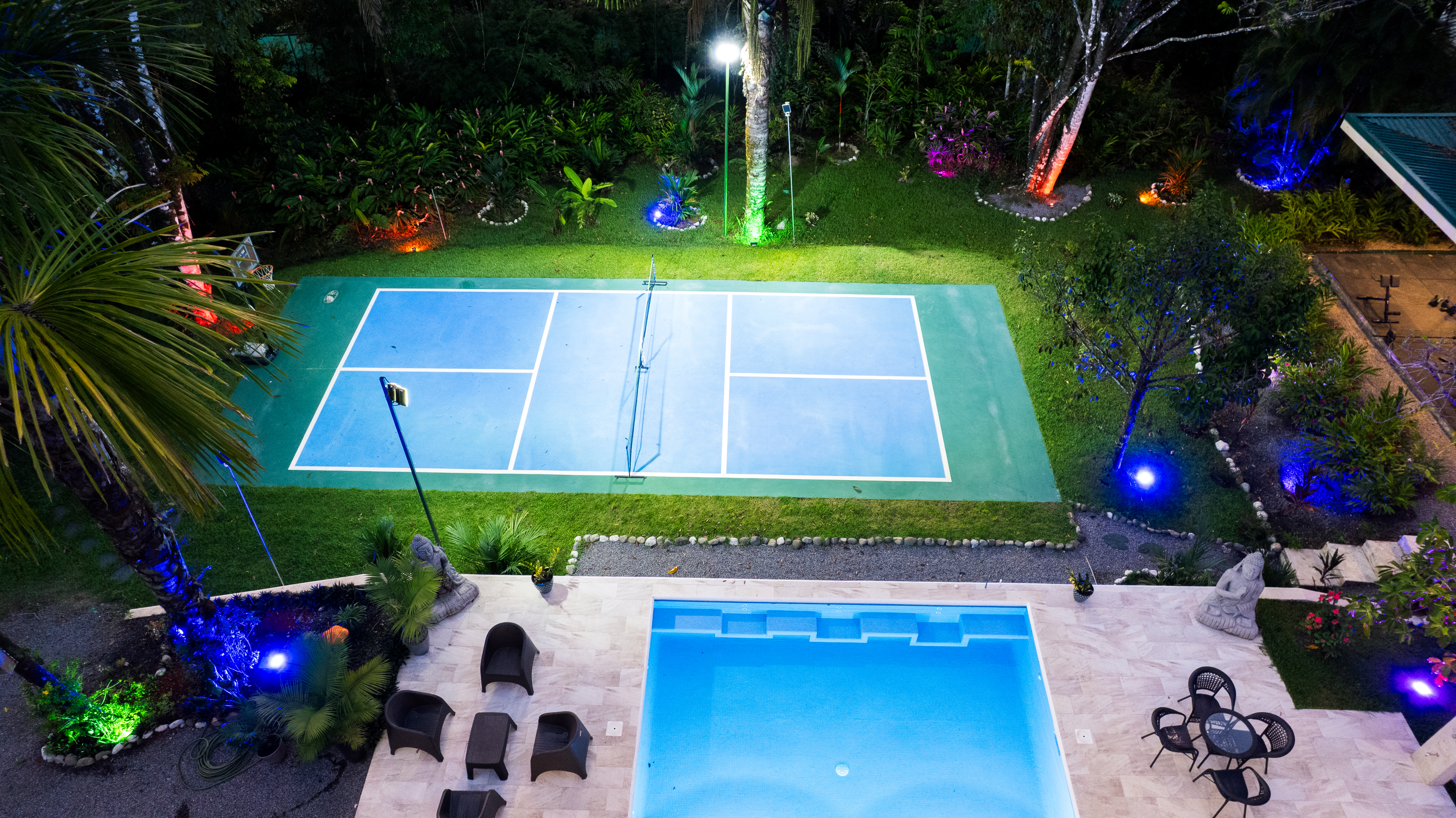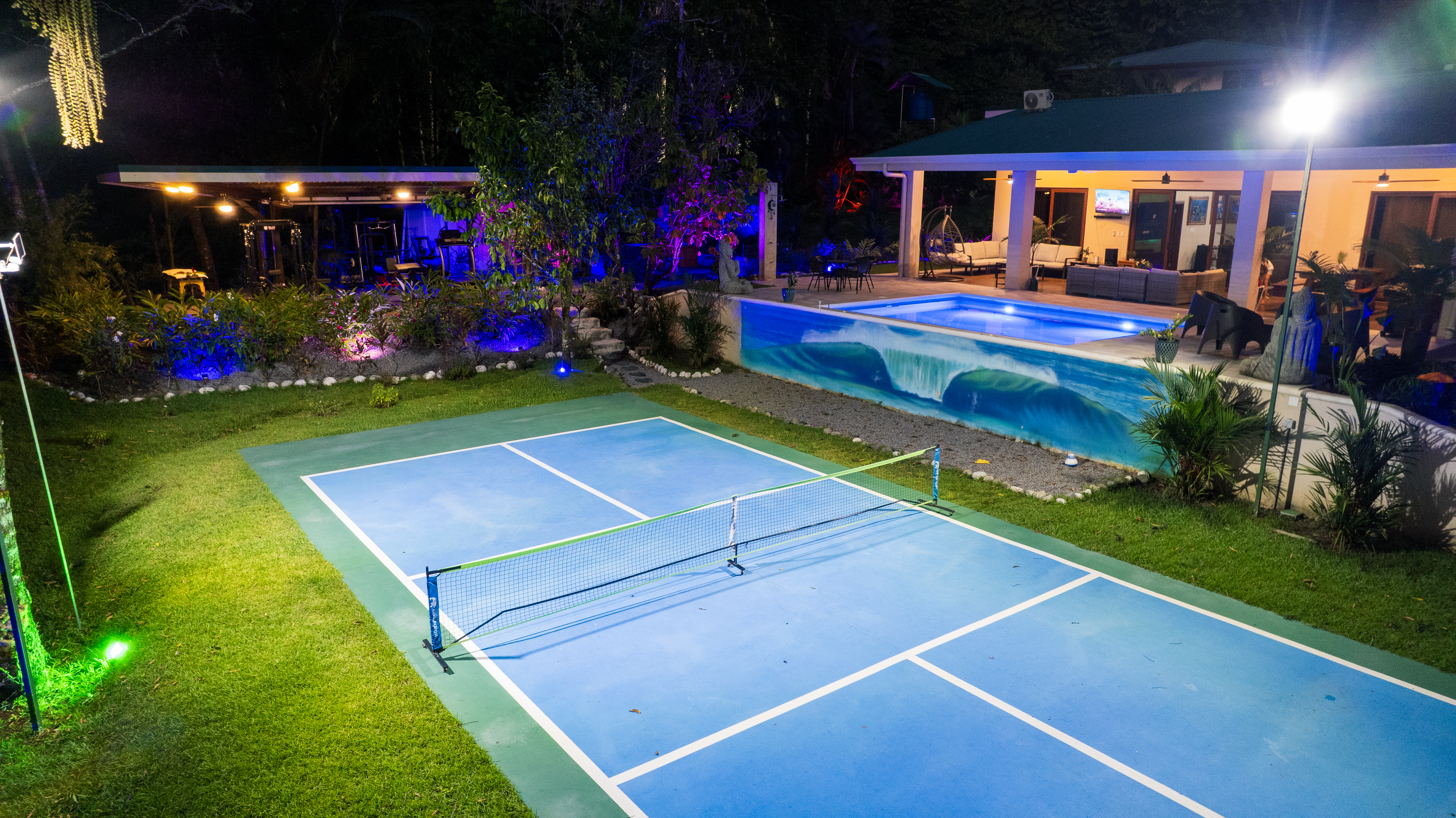 - Illuminated sports court and pool at Pavones Resort