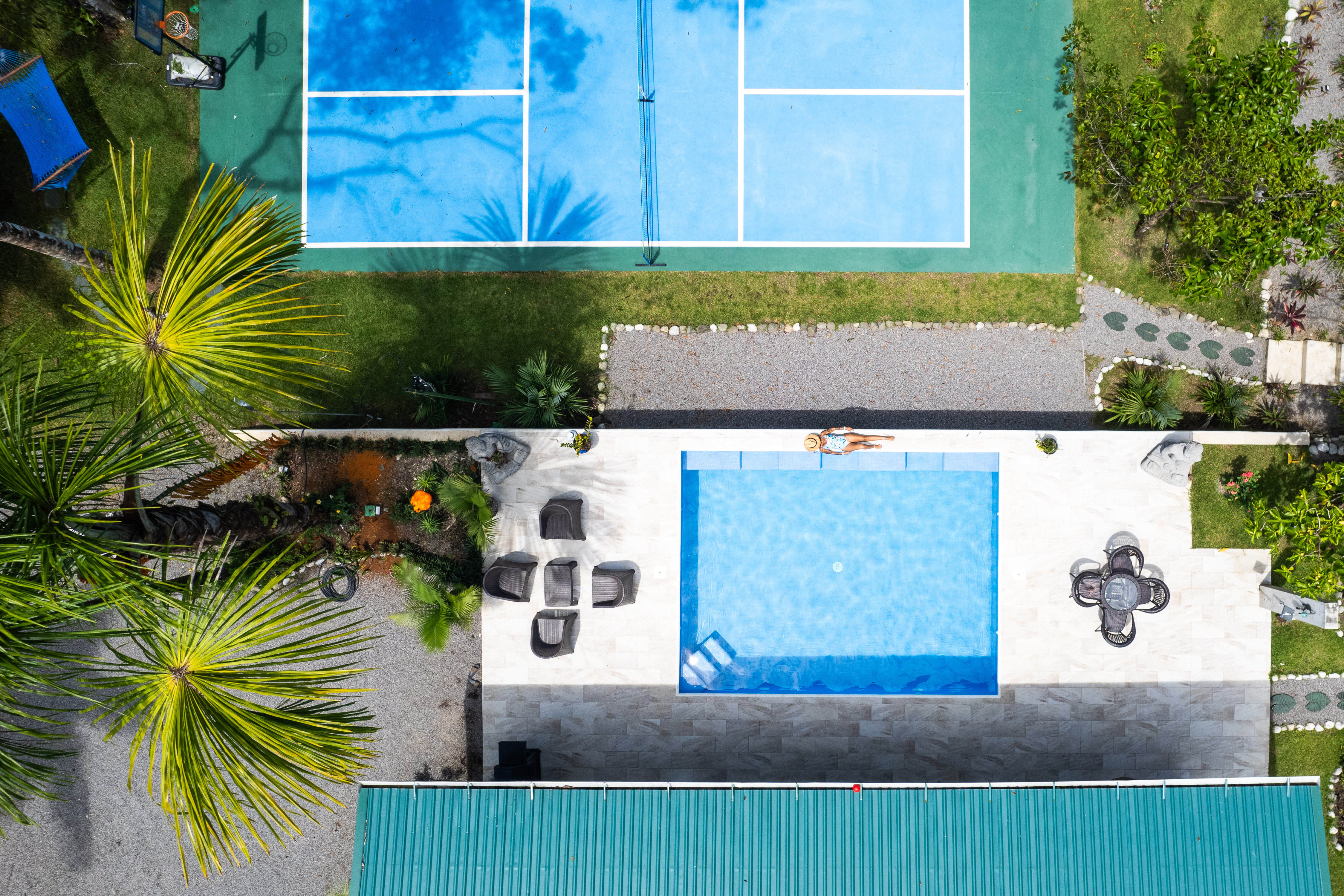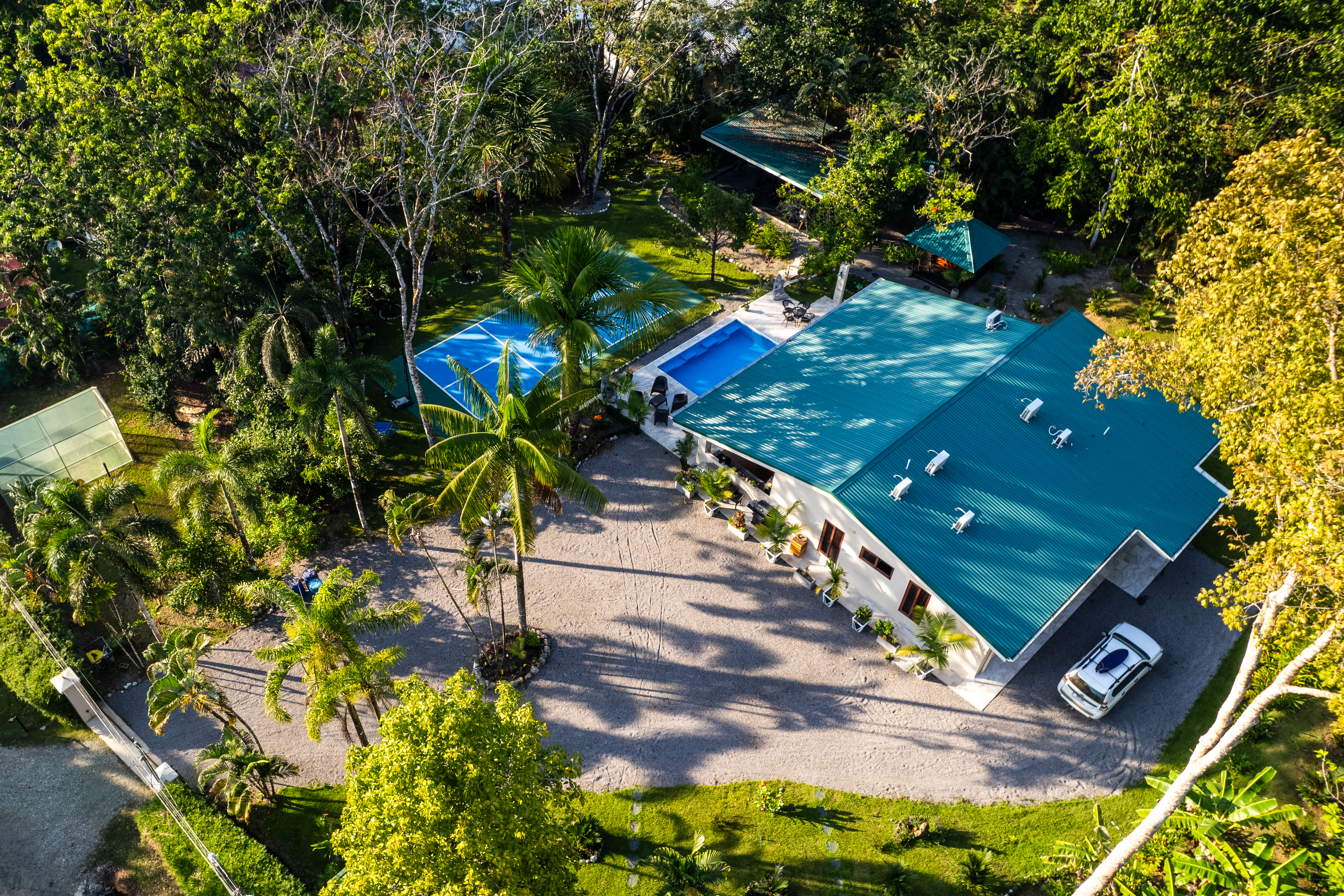 - Aerial view of Pavones Resort with tennis court and swimming pool