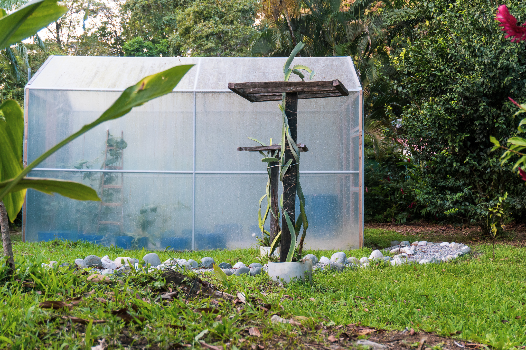 - Greenhouse with unique plant stand at Pavones resort