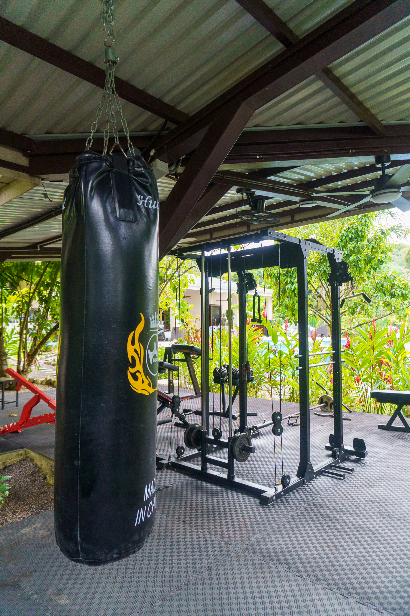 - Outdoor gym with punching bag at Pavones Resort