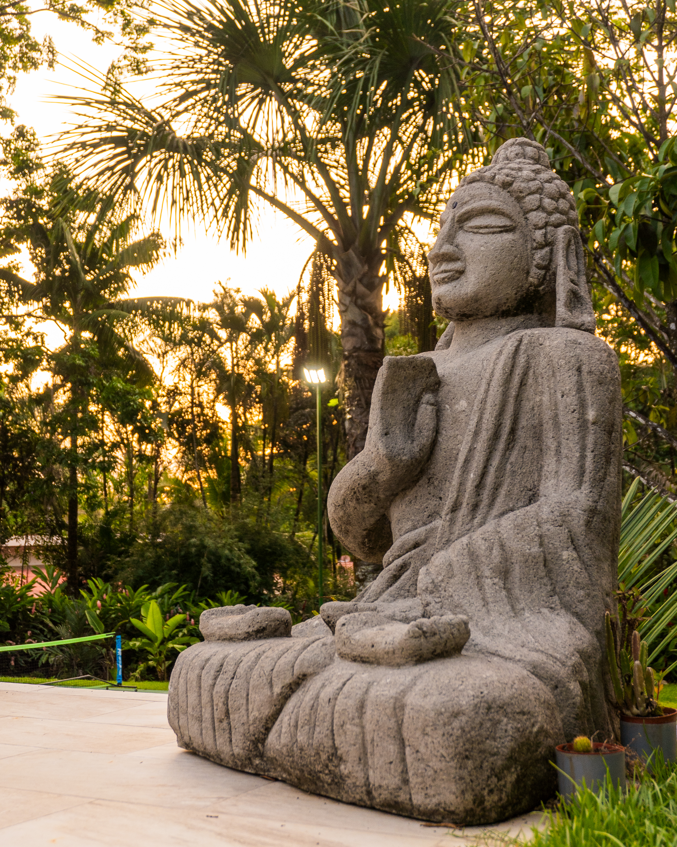 - Stone Buddha statue at Pavones Resort