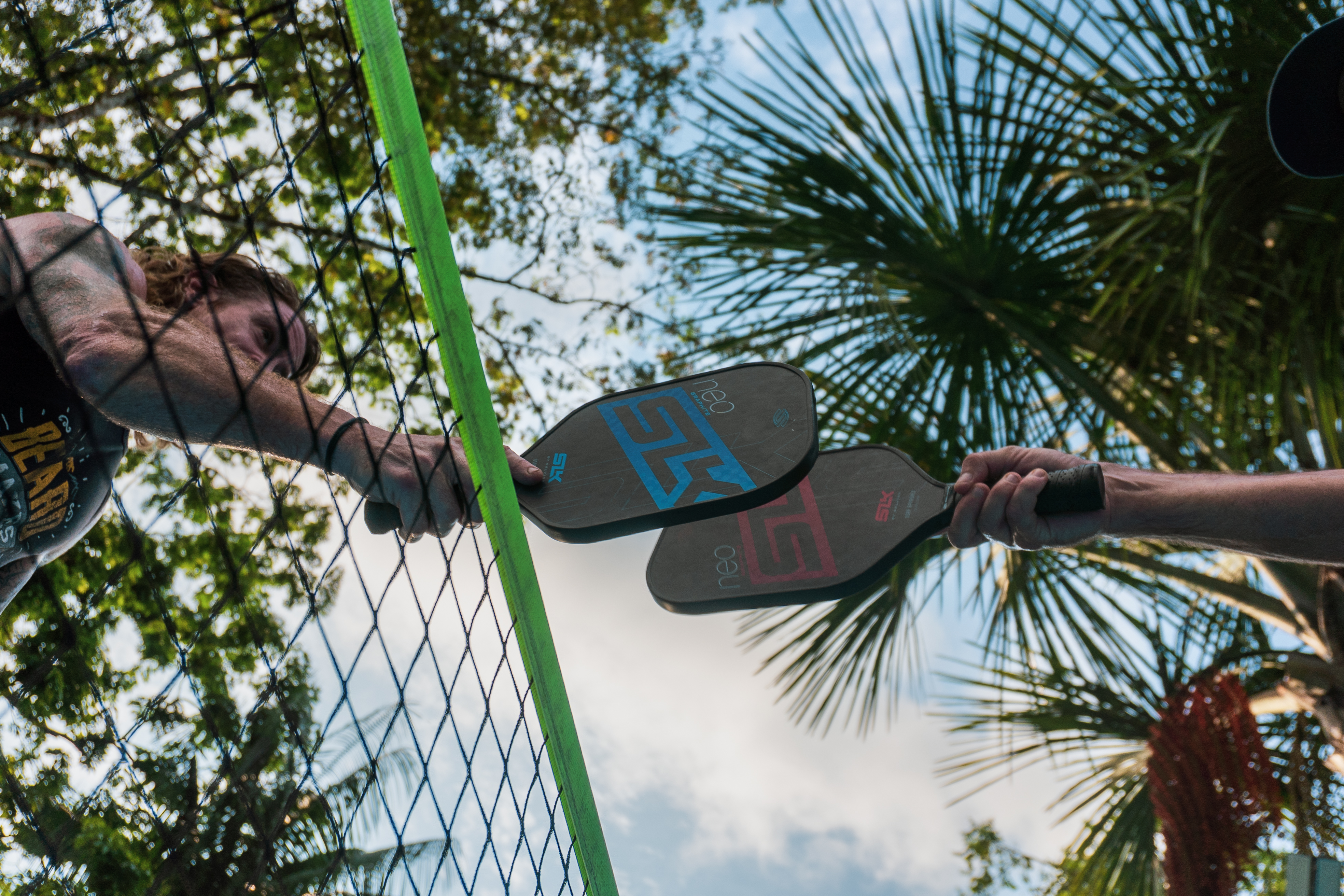 - Paddles held over a net for a beach game, from Pavones Resort Gallery.