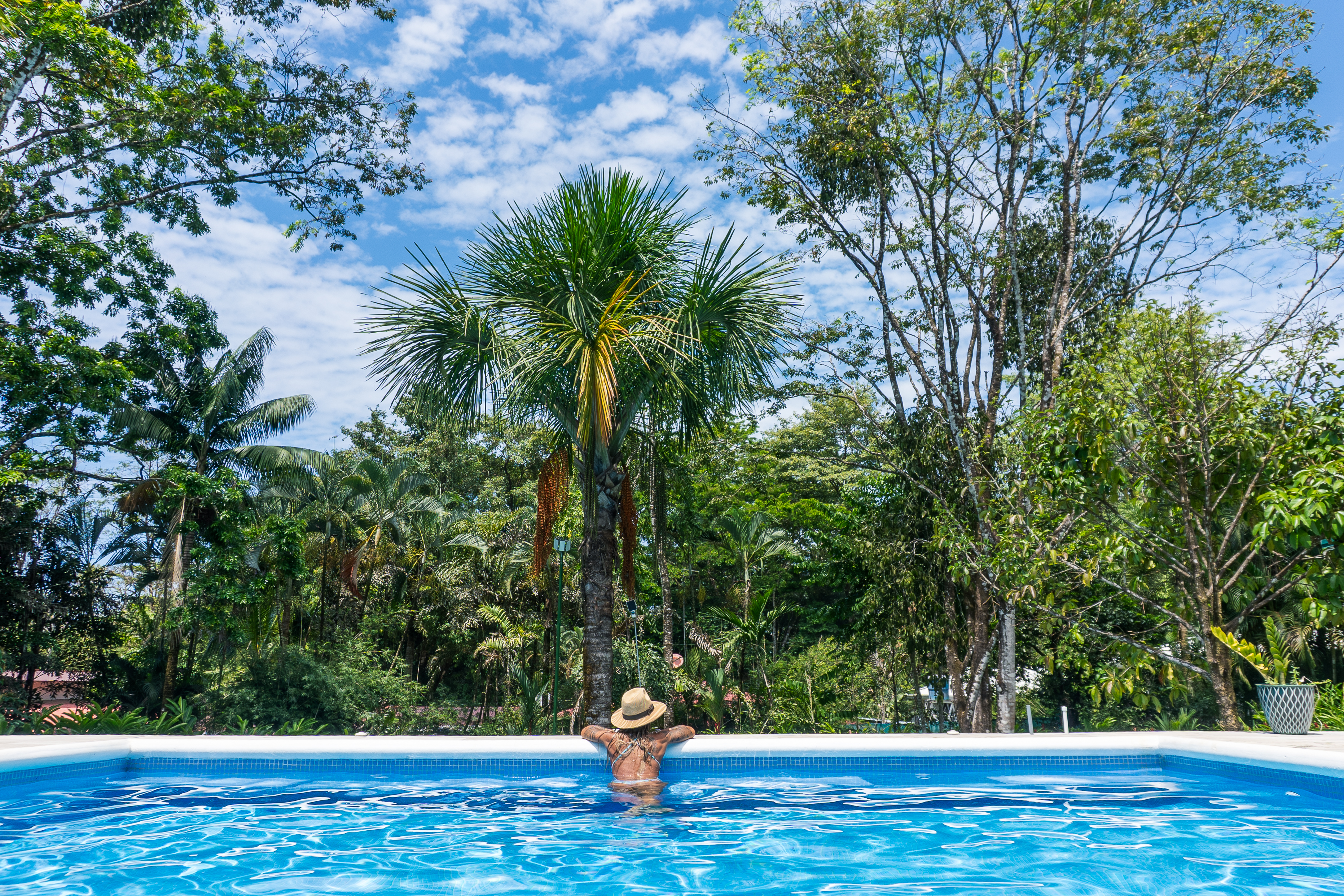 - Woman relaxing in a pool at Pavones Resort